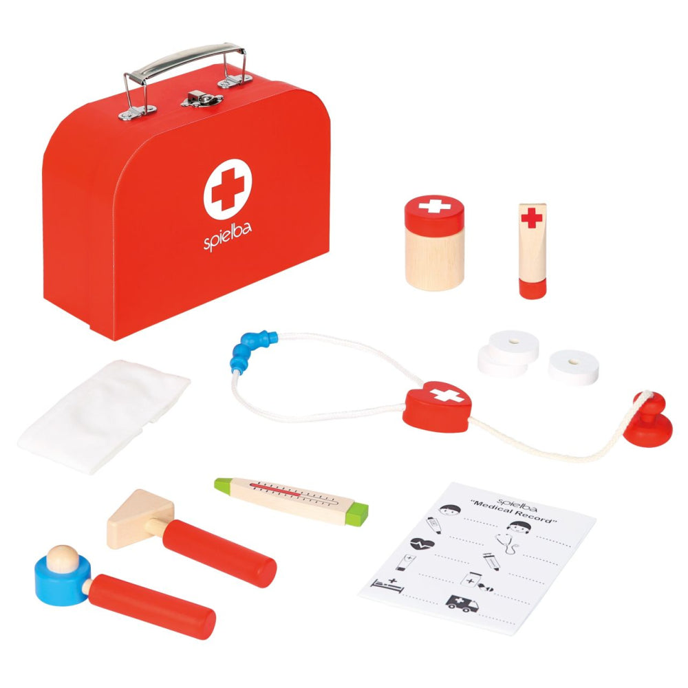 Ein Arztkoffer mit Teilen aus Holz. Die Kinder haben viel Spass beim Überprüfen der Patienten. Ein herrliches Set für kreative Rollenspiele. Übrigens, die Kinder verlieren durch das Doktorspielen ihre Angst vor einem richtigen Arztbesuch.