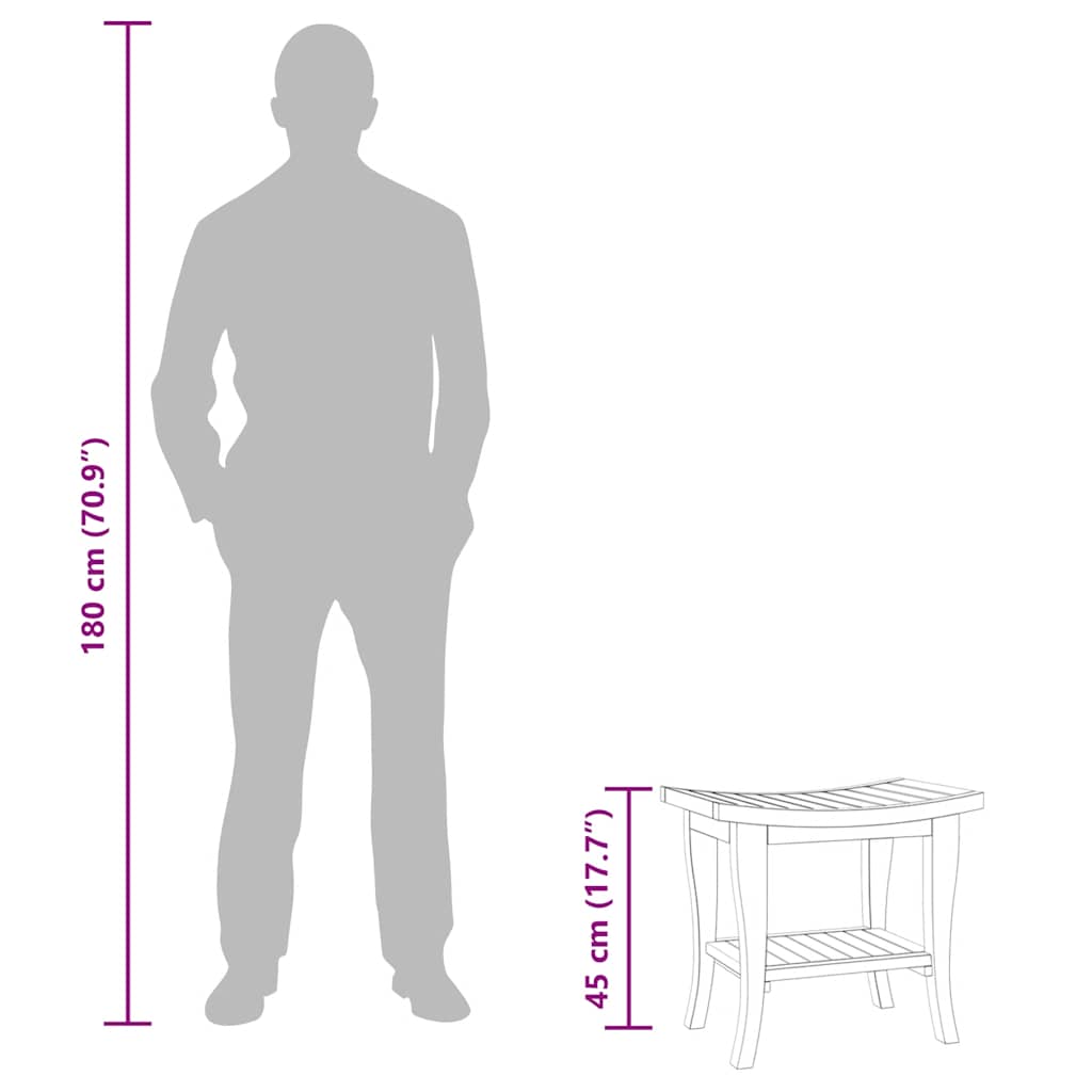 Dieser Beistelltisch aus Holz ist die perfekte Wahl für die Aufbewahrung von Handtüchern und Badzubehör im Badezimmer. Teak-Massivholz: Massives Teakholz ist ein wunderschönes Naturmaterial. Das Holz wurde abgelagert, kammergetrocknet und anschließend mit einer rustikalen Lasur behandelt. Teakholz wird für seine außergewöhnliche Festigkeit und Witterungsbeständigkeit geschätzt.Ablagefläche: Der Beistelltisch aus Teakholz ist bis zu 10 kg belastbar und eignet sich ideal zum Aufbewahren deiner Badutensilien wie Badetücher, Seife, Shampoos, Lotionen, Duschgel oder Duftkerzen. Zum Sitzen ist es überhaupt nicht geeignet.Leicht zu reinigende Oberfläche: Durch die glatte Oberfläche lässt sich der Bad-Tisch leicht mit einem feuchten Tuch reinigen.