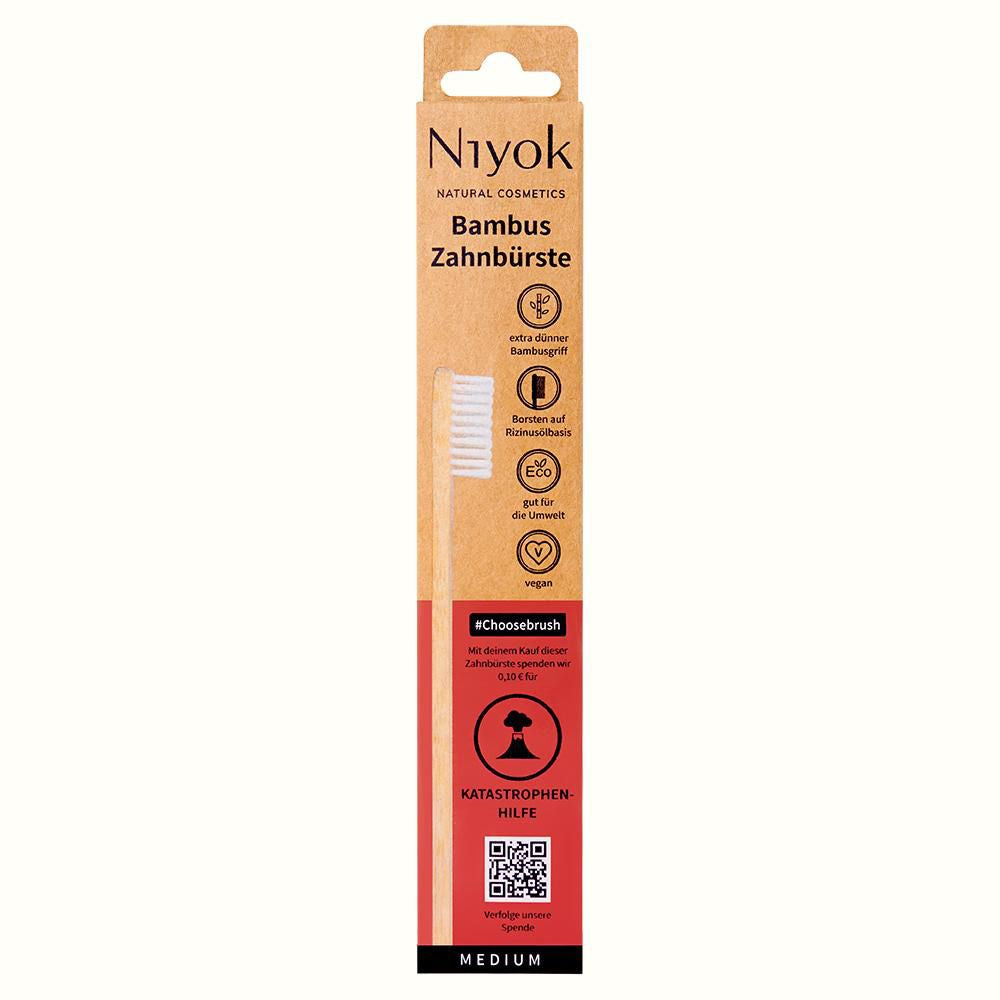 Niyok Bambus Zahnbürste - Katastrophenhilfe Mit einer Zahnbürste Katastrophengebiete beim Wiederaufbau unterstützen? Das geht nur mit der Choosebrush KATASTROPHENHILFE. Durch den Kauf dieser veganen Zahnbürste, die über einen nachhaltigen Griff aus Bambus sowie Borsten auf Basis von Rizinusöl verfügt, unterstützt ihr ShelterBox bei ihrer Mission, Menschen in Katastrophengebieten zu helfen. Shelterbox setzt sich aktiv für den Schutz und das Gewährleisten von Obdach in Gebieten ein, die von Konflikten und Katastrophen heimgesucht werden. Dabei errichten sie Notunterkünfte und stellen Hilfsgüter und Materialien zum wiederaufbau bereit, denn eine Unterkunft muss ein humanitäres Grundrecht sein, egal in welcher Situation. Konflikte und Katastrophen wird es jedoch leider immer geben - mit jedem Kauf einer Choosebrush KATASTROPHENHILFE gehen 0,10€ komplett transparent an ShelterBox. Dadurch könnt ihr Menschen in Not direkt helfen und unterstützen.