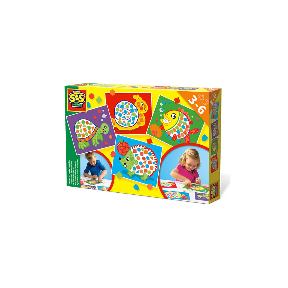 SES Bastelset Mosaik Das SES Bastelset Mosaik schult bei Bastelanfängern feinmotorische Fähigkeiten und fördert das Selbstvertrauen und den Spass am Basteln. Vorlagen und diverse Bastelmaterialien sind enthalten. So steht dem Bastelspass nichts mehr im Wege und mit den Mosaik Steinen lassen sich eigene und individuelle Sachen umsetzten. Das SES Bastelset Mosaik ist für Kinder von 3 bis 6 Jahren und lässt Kinderherzen höher schlagen.