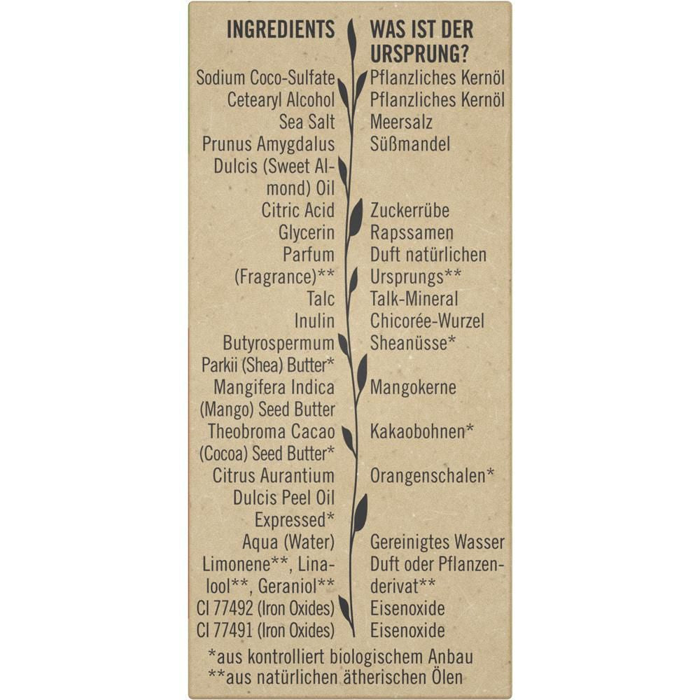 Sante Happiness Feste Körperpflege, 100 g Diese feste Dusche erfrischt den Körper und reinigt ihn mit sanften Tensiden. Sie enthält Bio-Orange - bekannt für ihre regenerierende Wirkung - sowie Mango und verbreitet einen himmlischen fruchtigen Duft. Die Formulierung schützt die Haut vor dem Austrocknen und bildet einen weichen zarten Schaum. Anwendung : Die Duschpflege direkt auf der nassen Haut aufschäumen und den gesamten Körper einseifen. Gründlich mit Wasser abwaschen! Hinweis: Nach der Verwendung trocknen lassen und trocken aufbewahren.