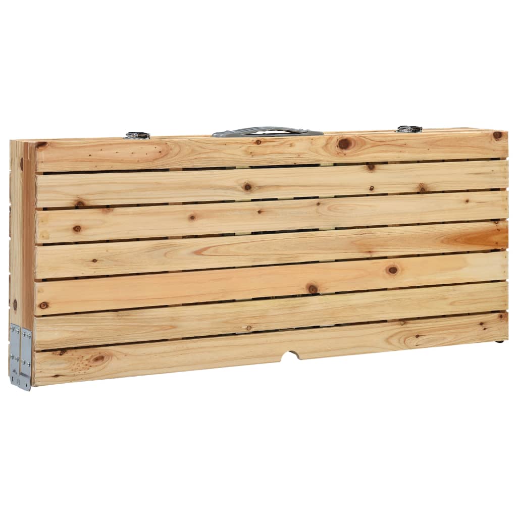 Dank seines unverwechselbaren tragbaren Designs kann dieser Campingtisch mit Sitzen in Sekundenschnelle aufgestellt und zusammengeklappt werden! Es ist praktisch in Gärten, Hinterhöfen, auf Terrassen sowie bei Picknicks oder Campingausflügen. Das Tannenholz verleiht ihm einen natürlichen Charme, während das Gestell aus hochwertigem Stahl und Aluminium seine Haltbarkeit und Robustheit gewährleistet. Dank der Klappkonstruktion können dieser Campingtisch und die Sitze in einen Koffer verstaut werden, was den Transport erleichtert und es bei Nichtgebrauch einfach aufbewahrt werden kann. Zusätzlich ermöglicht das Schirmloch an der Tischplatte die bequeme Montage eines Sonnenschirms. Genießen Sie Ihre Zeit im Freien mit diesem Campingmöbel!