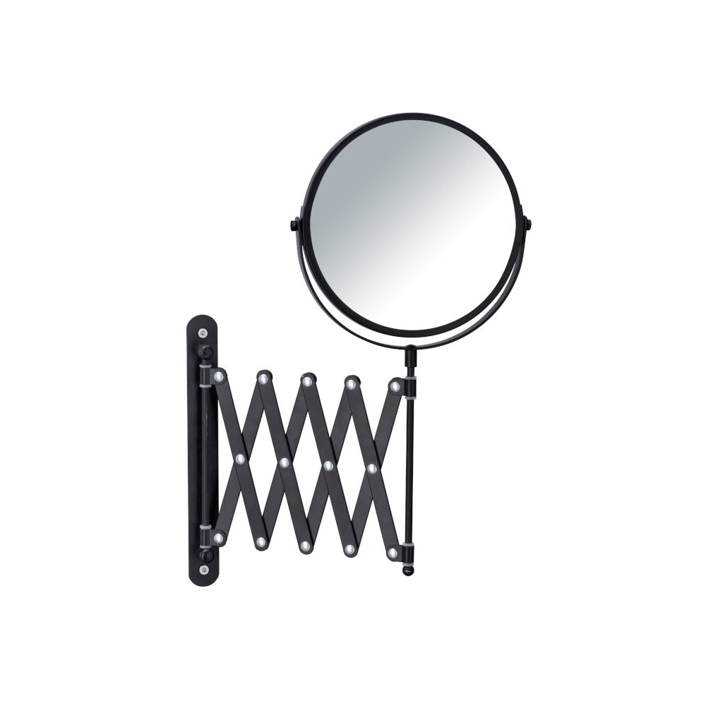 Wenko Kosmetik-Wandspiegel Teleskop, Exclusivschwarz Der Spiegel bietet neben der 100% Spiegelfläche eine 3-fach Vergrößerung für den kosmetischen Einsatz. Schwenk- und höhenverstellbar. Armlänge ca. 50 cm. Durchmesser 17 cm. 19 x 50 x 38.5 cm