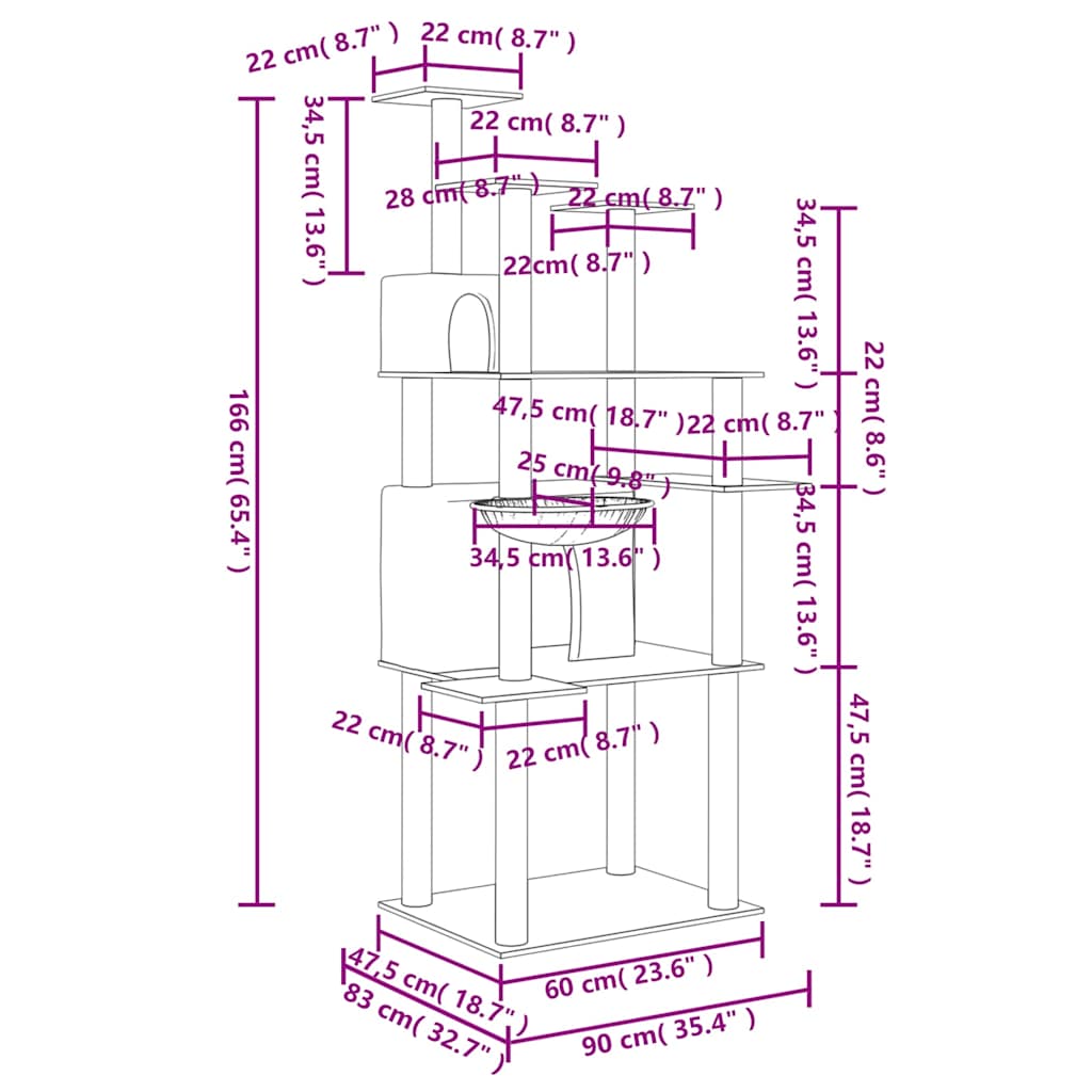 Kratzbaum mit Sisal-Kratzsäulen Dunkelgrau 166 cm