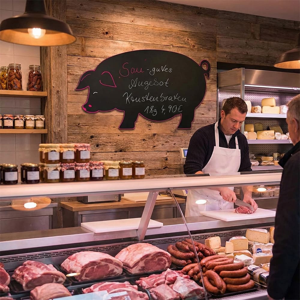 Kreidetafel Schwein ohne Rahmen - Ideal für Metzger, Gastronomen, Landwirte, etc.