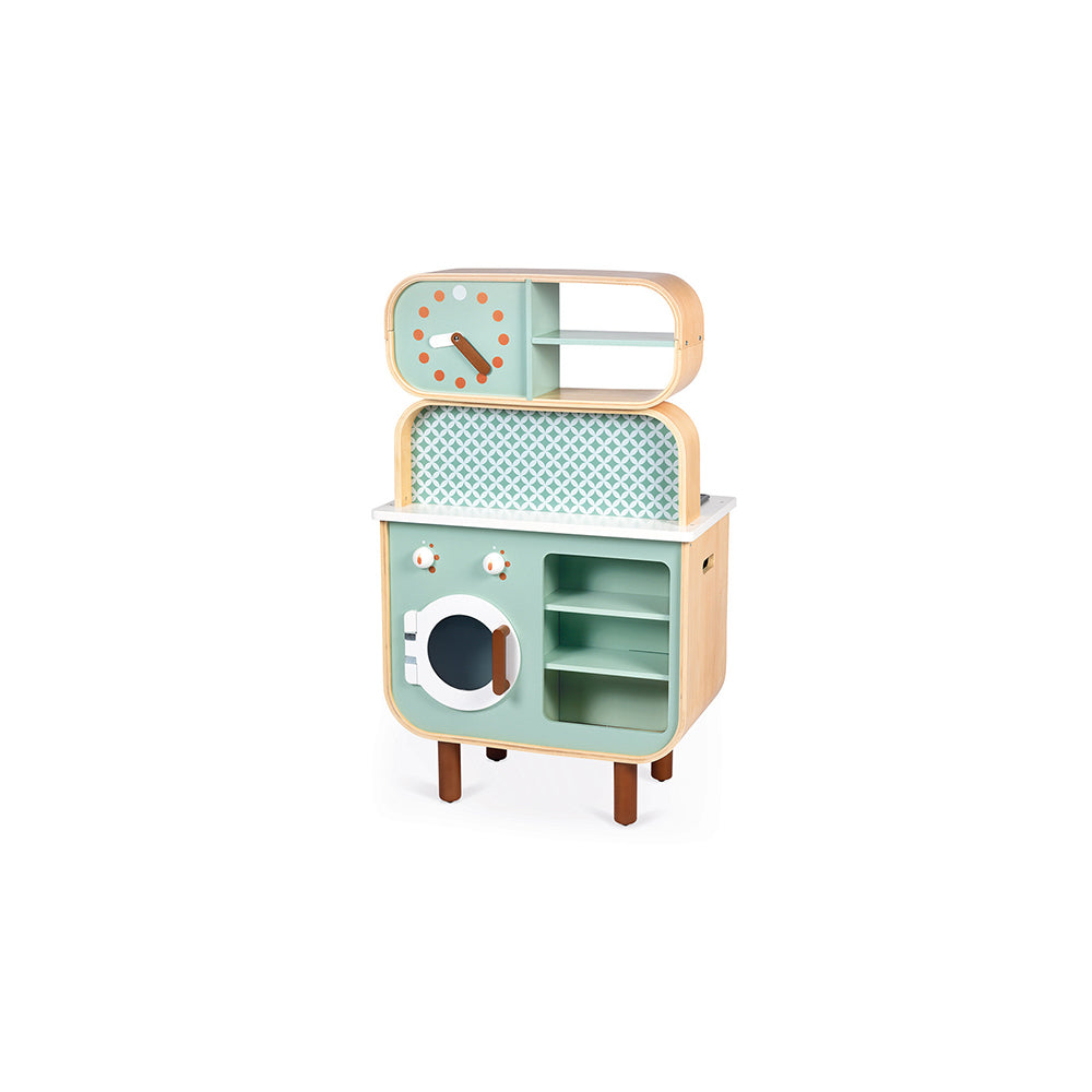 Janod Küche Reverso grosses Model Spielzeug für Kinder von 3-8 Jahren. Sanfte Farben, ein einzigartiger und moderner Stil, der viele hübsche Details vereint ... Kinder werden es lieben! Perfekt ausgestattet dank seiner doppelseitigen Seite, bietet es viele Möglichkeiten zum Spielen, alleine oder mit anderen. Eine Uhr mit funktionellen Zeigern, einer Metallspüle, einer Schall- und Lichtinduktionsplatte. Zeigen Sie einmal auf die roten Tasten, damit die Teller leuchten, und hören Sie dann ein zweites Mal, wie der Sohn des Wassers kocht. Ton und Licht schalten sich nach 30 Sekunden automatisch aus oder drücken ein drittes Mal. Wie eine echte Küche ist sie einseitig mit 2 Drehknöpfen mit Soundeffekten, einem Backofen, einer Mikrowelle, einem Schrank, mit Magnettüren ausgestattet und auf der Rückseite mit 2 Tasten mit Soundeffekten, einer Waschmaschine und Lagerregale. Um diese Küche zu vervollständigen, sind 7 Metallzubehörteile enthalten: 1 Pfanne, 1 Auflaufform, 1 Sieb, 1 Löffel, 1 Spatel, 1 Schaumlöffel, 1 Nudellöffel und schließlich 1 Stofftopfhalter. Ihre Kleinen werden nichts vermissen, damit sie das Beste aus kleinen Gerichten machen! Arbeitsplattenhöhe: 50 cm. Gebogenes Sperrholz Box mit seitlichen Griffen geschlossen Standardlackierung