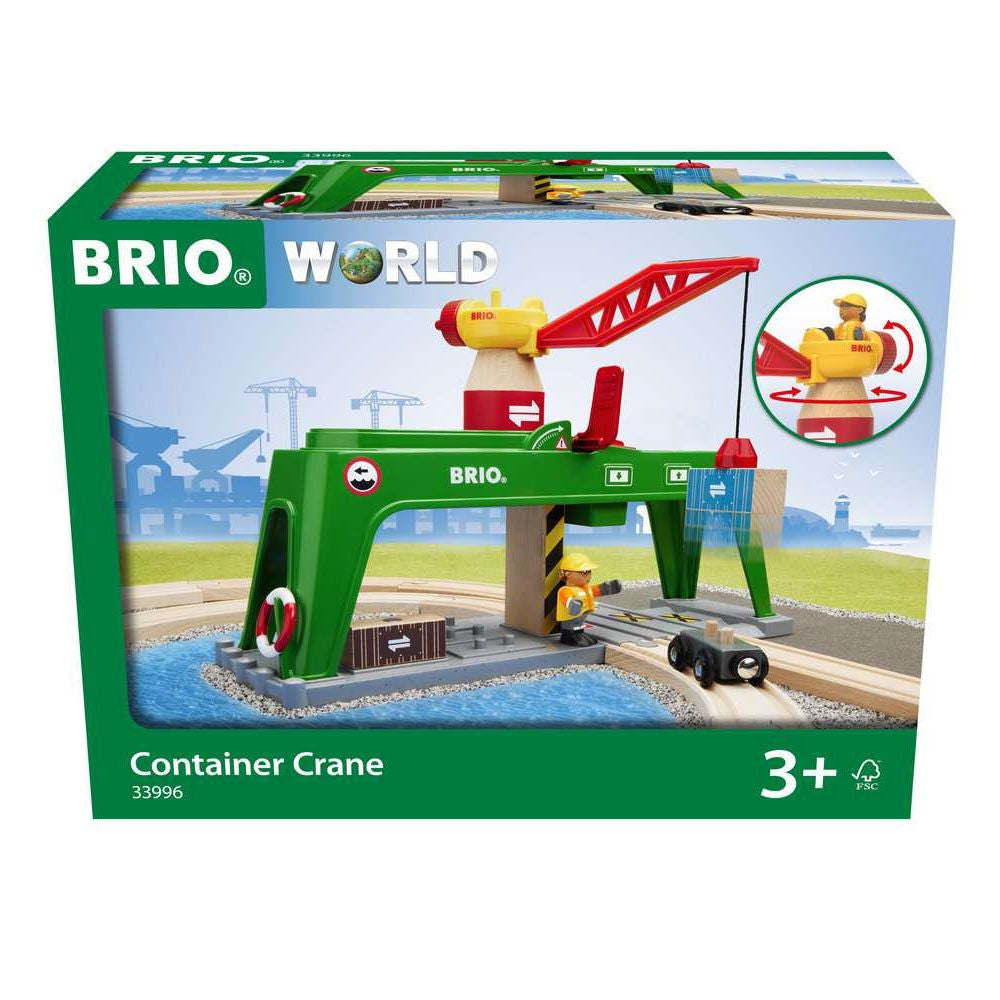 Mit dem voll beweglichen Holz-Containerkran im BRIO Bahn Verlade-Terminal werden Güter in Windeseile vom LKW oder dem Schiff auf die Eisenbahn umgeladen. Inklusive Spielfigur und zwei magnetischen Holz-Containern. Mit dem voll beweglichen Holz-Containerkran im BRIO Bahn Verlade-Terminal werden Güter in Windeseile vom LKW oder dem Schiff auf die Eisenbahn umgeladen. Mit Hilfe des roten Hebels landet die Ladung punktgenau auf dem Eisenbahn-Waggon. Inklusive Spielfigur und zwei magnetischen Holz-Containern. Fördert die kindliche Entwicklung durch logisches Denken und trainiert mit Hilfe von Kurbel und Schalter die Feinmotorik.