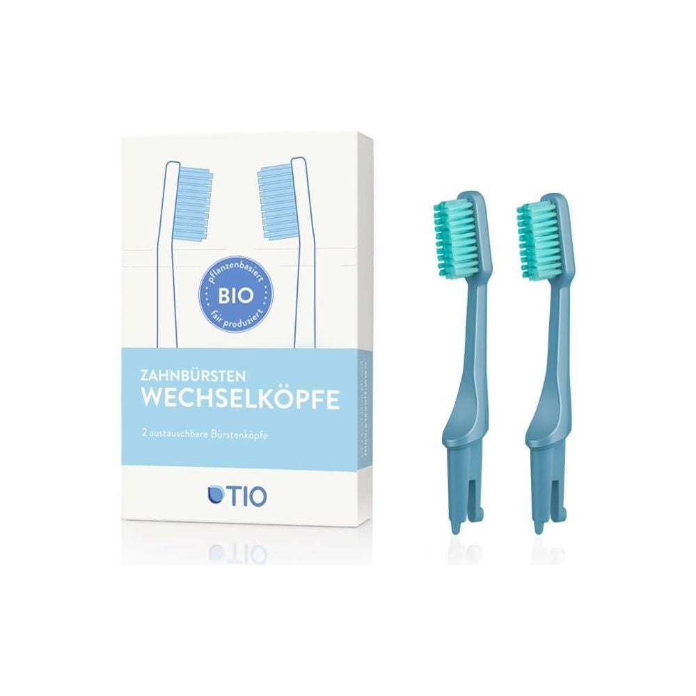 TIO Wechselköpfe 2er Pack Soft Gletscher Die leicht angeschrägten Zahnbürstenköpfe von TIO sind ein toller Ersatz für alte und verbrauchte Bürsten. Damit brauchen Sie nicht eine ganz neue Zahnbürste zu kaufen, können aber dennoch auf hygienische neue Bürsten zurückgreifen. Die umweltfreundliche Zahnbürste von TIO sorgt für ein sorgloses Reinigen der Zahnzwischenräume, während die abgerundeten Spitzen für einen strahlenderen Glanz sorgen. Außerdem bestehen diese Wechselköpfen im Gegensatz zu herkömmlichen Zahnbürsten aus nachhaltigen Rohstoffen: Der Bürstenkörper wird aus pflanzenbasiertem und recycelbarem Biokunststoff hergestellt, die Borsten bestehen aus nachwachsenden Rohstoffen auf Basis von Rizinusöl. Damit sparen diese Wechselbürsten eine Menge wertvoller Ressourcen und Abfall ein. Wichtig : Die Bürstenköpfe zu wechseln ist ganz simpel: Einfach das Ende des neuen Bürstenkopfes in die markierte Stelle auf der Rückseite des Griffs drücken und den alten abnehmen. Den neuen aufstecken. Fertig.