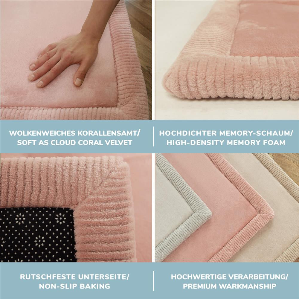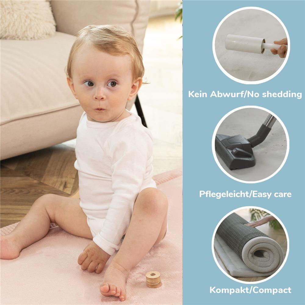 Hakuna Matte Samtmatte, Wolke mit Memory-Schaum, (2 m x 1.5 m), Pink Der ultra-weiche Tatami-Teppich von Hakuna Matte in 3 stilvollen Farben: Grau, Beige oder Rosa dekoriert Ihr Kinderzimmer und stimuliert Ihr Baby zugleich. Unsere extra grosse Baby Spielmatte ist 200 x 150 cm gross und 2 cm dick, perfekt zum Krabbeln, Spielen, Yoga und für Fitness zu Hause. Die hochwertige Baby Spieldecke besteht aus 3 Schichten: Korallensamt, hochdichter Memory-Schaum und rutschfester Teppichunterlage. DER WOLKENWEICHE KINDERTEPPICH besteht aus drei Schichten: 1. Korallensamt für den weichsten Hautkontakt, 2. elastischer Memory-Schaum für bequemes Spielen und Krabbeln, 3. rutschfeste Rückseite zum Schutz vor Stössen beim Fallen. Durch die extra Grösse von 200 x 150 x 2 cm ist diese faltbare Spielmatte perfekt zum Krabbeln, Spielen, Yoga und für die Fitness zu Hause. STILLVOLL UND AMÜSANT – diese hochwertige Baby Spieldecke ergänzt Ihre Einrichtung in Ihrem Wohnzimmer oder Kinderzimmer. Die schönen Pastellfarben Grau, Beige oder Rosa fügen sich perfekt in Ihre Inneneinrichtung ein und geben ein Gefühl von Harmonie und Komfort. PREMIUM MEMORY-SCHAUM ist 2 cm dick und nimmt seine Grösse im Vergleich zu billigeren Alternativen schneller wieder an (innerhalb von 1-2 Tagen). Der Kinderteppich wird als Decke gefaltet geliefert und muss im Gegensatz zu vakuumverpackten Teppichen nicht gebügelt werden. Die komprimierte Verpackung spart Platz beim Transport und senkt die Kohlenstoffemissionen. OEKO-TEX 100 STANDARD (Zertifikatsnummer: 10.HCN.80712) – die sichere und geruchslose Kinderspielmatte ist aus BPA-, Phthalat-, Formamid- und PAK-freiem Polyester hergestellt. Diese Krabbelmatte Baby erfüllt alle EU-Produktsicherheitsstandards. PFLEGELEICHT & HYGENISCH – diese Schaumstoff-Spielmatte kann in Sekundenschnelle mit einem Staubsauger oder einem feuchten Tuch und Seife gereinigt werden. Der flauschige Teppich ist bei 30°C handwaschbar und für die Fussbodenheizung geeignet. DESIGNED IN GERMANY - wir bieten eine 2-jährige Garantie. 5 Vorteile der Hakuna Matte Wolken Spielmatte MODERNE PREMIUM-FARBEN – dekoriert Ihr Kinderzimmer oder Wohnzimmer und unterstützt Ihr Baby DRUCKENTLASTENDER MEMORY-SCHAUM schützt Ihr Baby vor Stössen RUTSCHFESTE RÜCKSEITE verhindert ein Verrutschen der Matte 100% SICHER – hergestellt aus weichem, atmungsaktivem, hypoallergenem Polyester KOMPRIMIERTE VERPACKUNG – nimmt die Originalform schnell und ohne Falten wieder an und spart Emissionen beim Transport Produktspezifikationen Abmessungen: 200 x 150 cm Dicke: 2 cm Farbe: pink Verpackung: komprimierter Beutel und Karton