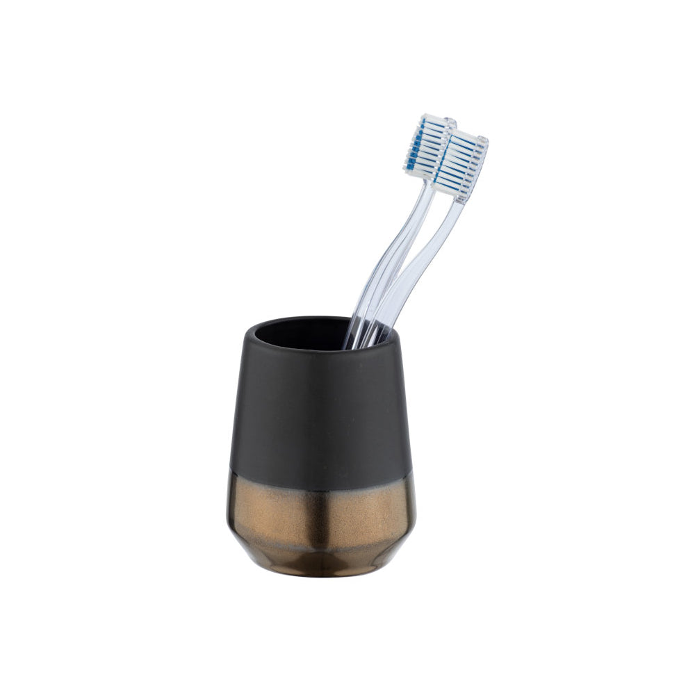 Wenko Zahnputzbecher Brandol Hochwertige Keramik, mit kupferfarbenen Absatz. Mit flexibler Kunststoffabdeckung in schwarz.