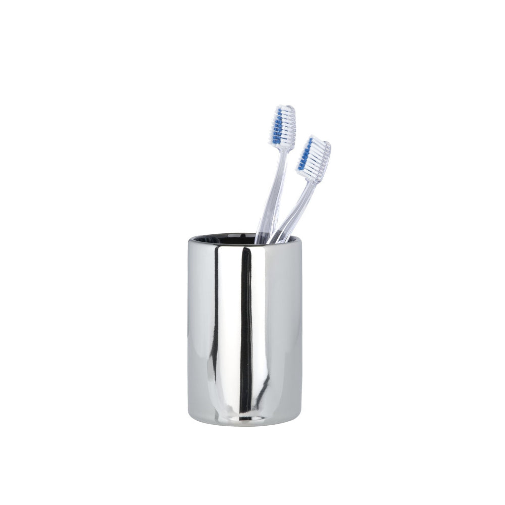 Wenko Zahnputzbecher Polaris chrom Hochwertiger Keramik. ø 7.5 cm