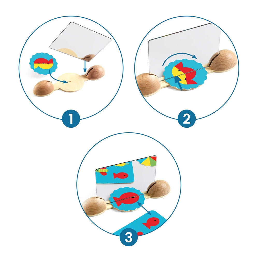 Djeco Ze Mirror Bilder Mit Ze Mirror Images lernen Kinder, mit dem Spiegelbild zu spielen. Das Kind legt das Bild unter den Spiegel und dreht es, bis es eines der Bilder auf den Karten wiedererkennt. Ze Mirror Images für Kinder ab 4 Jahren.