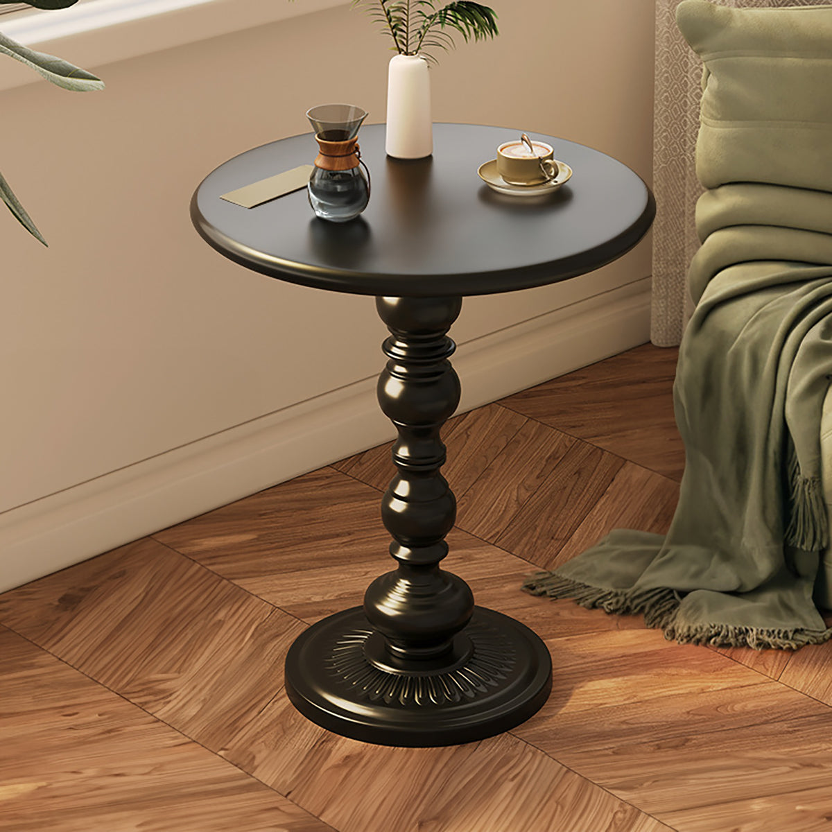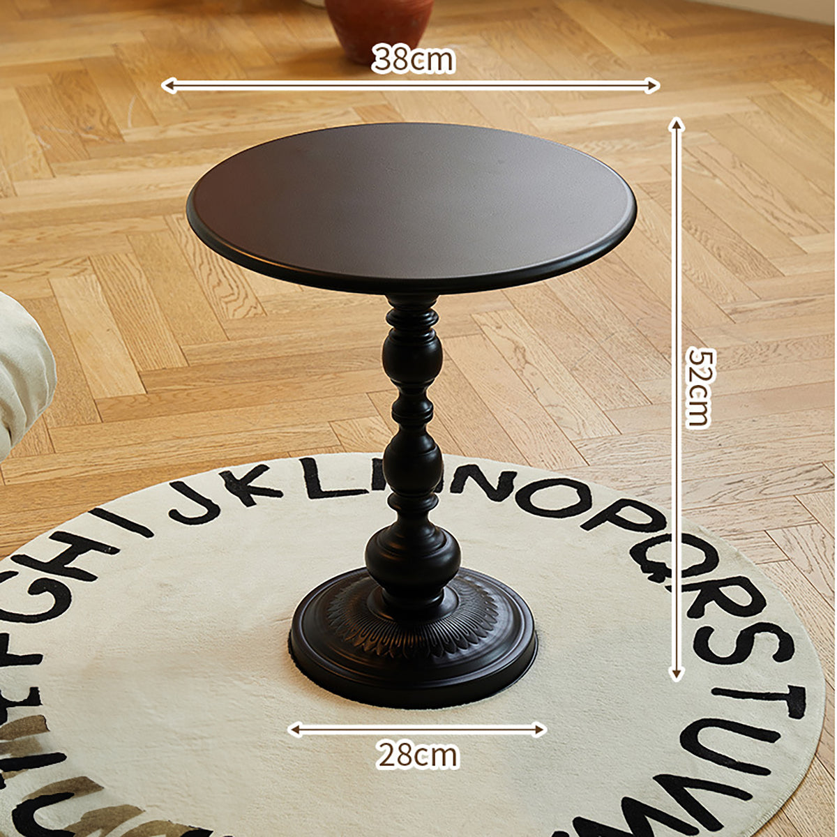 Questo elegante tavolino unisce un design raffinato a una pratica funzionalità. Misura 52 x 38 x 28 cm e si adatta perfettamente a un divano, una poltrona o un letto. Il tavolino colpisce per la sua colonna centrale tornita, finemente lavorata, e per la sofisticata finitura nera, che gli conferisce un carattere lussuoso e senza tempo. La solida base rotonda garantisce stabilità, mentre le sue dimensioni compatte lo rendono ideale per stanze più piccole o come elemento decorativo.