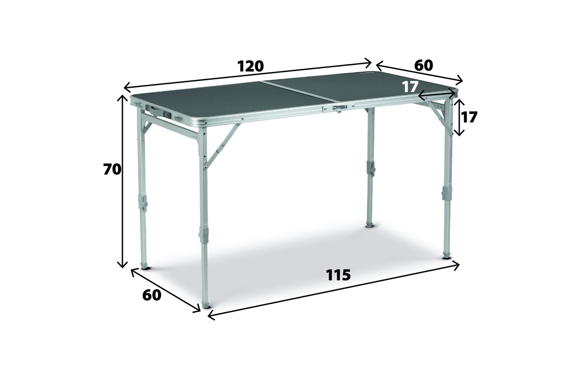 Hochwertiger Outdoor-Tisch mit wetterfester Klapptischplatte und leichtem, höhenverstellbarem Gestell aus eloxiertem Aluminium. Im zusammengeklappten Zustand sehr kompakt verstaubar und somit ideal für Kleinbusse, Vans und Wohnmobile.
