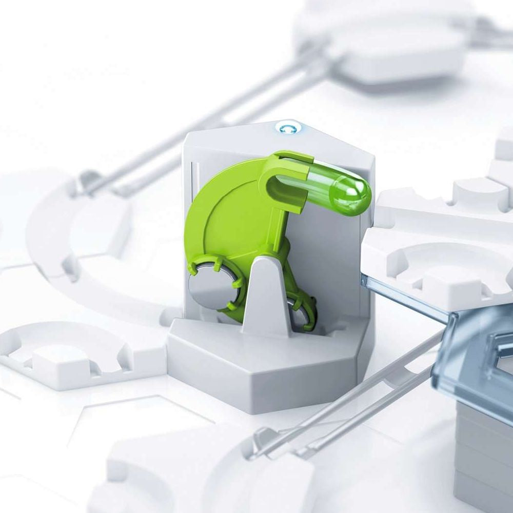 Con la leva elettronica GraviTrax POWER Element, le biglie possono essere sollevate ripetutamente ai livelli più alti della pista per biglie GraviTrax. Riprendi l'altezza più e più volte senza intervento manuale! La leva GraviTrax POWER Element solleva le biglie fino a 4 blocchi di altezza e torna automaticamente alla posizione di partenza dopo ogni biglia. Questo permette al giocatore di spostare più biglie ai livelli più alti in un'unica corsa. In combinazione con qualsiasi set di partenza, il movimento delle biglie può essere controllato con maggiore precisione e la durata della pista può essere estesa aumentando ripetutamente l'altezza. Con GraviTrax, il divertimento di costruire non conosce limiti. Il sistema di piste per biglie GraviTrax può essere ampliato all'infinito con estensioni, garantendo un divertimento di costruzione e gioco senza limiti. Progettando liberamente le piste per biglie ed esplorando il comportamento di rotolamento e volo delle biglie, si affina la comprensione della scienza e si sperimenta in prima persona la gravità. Il simbolo STEM sui nostri prodotti indica una categoria di gioco che rende la scienza accessibile in modo giocoso. STEM (Scienza, Tecnologia, Ingegneria, Matematica) corrisponde al MINT tedesco (Matematica, Informatica, Scienze naturali, Tecnologia).
