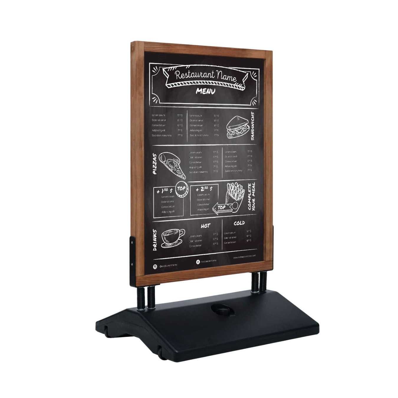 Dank des gängigen DIN A1-Formats (594 × 841 mm) lassen sich Plakate, Menüs oder Werbebotschaften übersichtlich präsentieren. Mit den im Lieferumfang enthaltenen Antireflex UV-Schutzfolien mit Magnetband werden Plakate einfach und sicher befestigt.