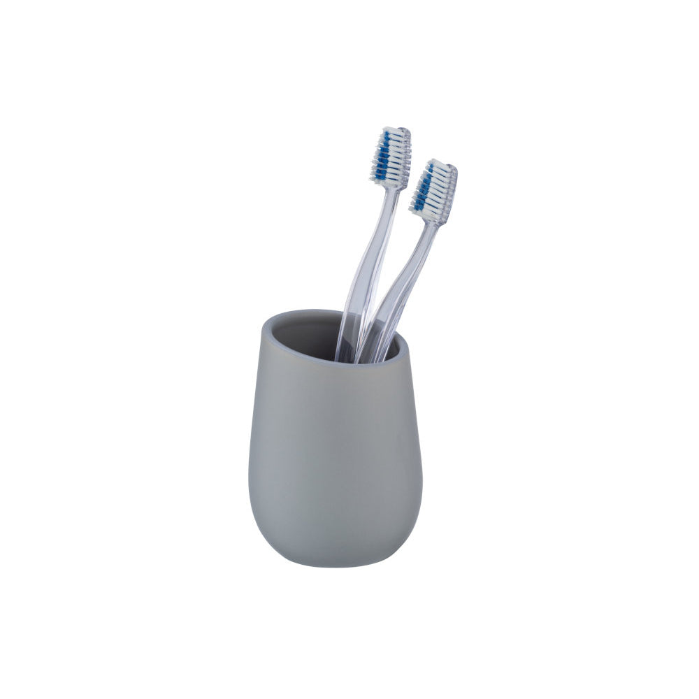 Portaspazzolino in ceramica Wenko Badi, grigio opaco, ceramica di alta qualità. Testina per scopino in silicone con pulisci-bordi.