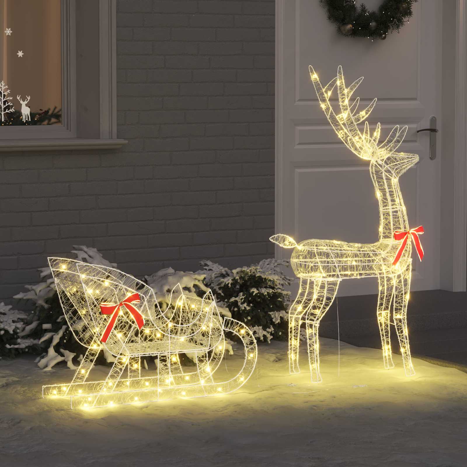 Slitta trainata da renne bianco caldo 70 x 26 x 128,5 cm acrilico