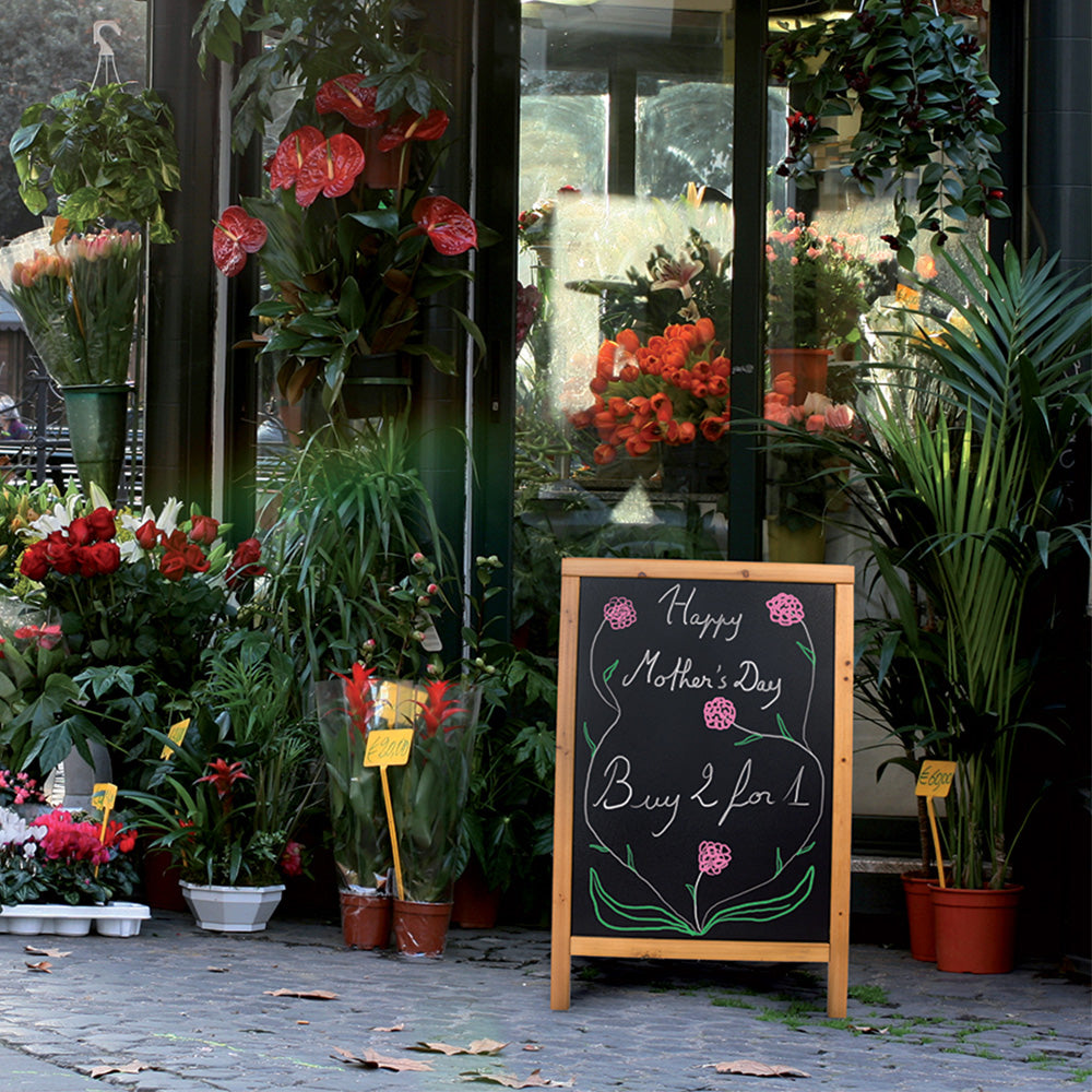 Die doppelseitige Kreidetafel ist stabil mit Edelstahlkomponenten befestigt und bietet dir mit einer grosszügigen Schreibfläche von 47,5×67,5cm reichlich Platz, um Angebote, Tagesmenüs oder Hinweise gut sichtbar zu präsentieren. Beschriften lässt sich die Tafel ideal mit unseren Securit® Kreidemarkern, die ein kontrastreiches, modernes Schriftbild erzeugen und die Oberfläche schonen. Herkömmliche Kreide empfehlen wir nicht, da sie die Schutzschicht beschädigt und optisch weniger überzeugt. Für besonders langlebige Botschaften, wie Preislisten oder Öffnungszeiten, kannst du die Tafeln auch mit Folien beschriften lassen – gerne erstellen wir dir dafür ein individuelles Angebot.