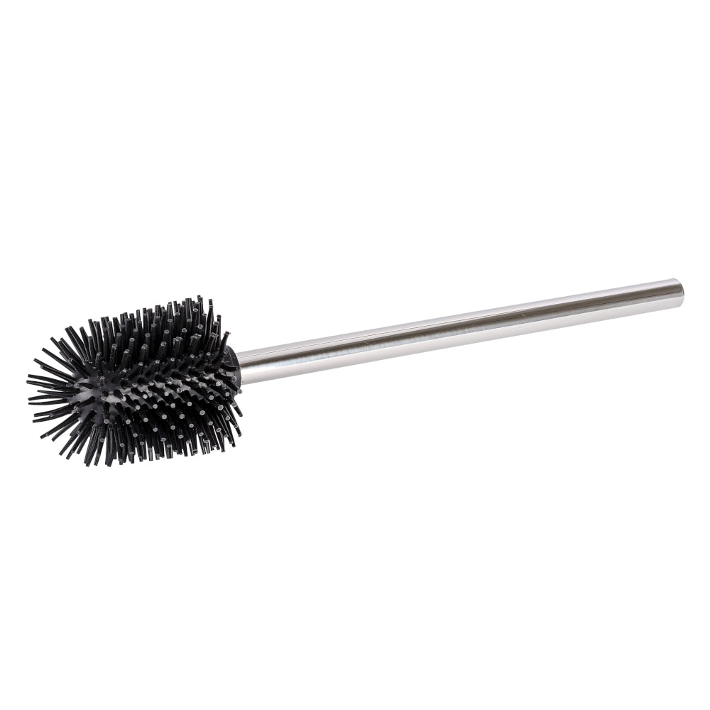 Wenko Silikon Ersatzbürste mit, Edelstahlstielshiny/black Silikon WC-Bürstenkopf. Eine spezielle Anti-Haft-Wirkung sorgt dafür, dass sich hartnäckige Reste und Toilettenpapier nicht in der Bürste festsetzen, sondern beim Reinigen einfach weggespült werden. Mit wechselbarem Bürstenkopf. ø 8.5 x 35 cm