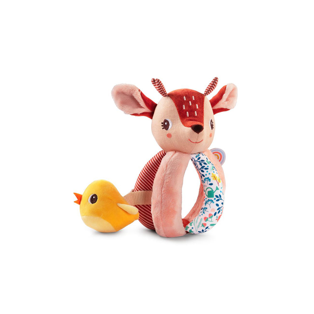 Lilliputiens Stella Greifrassel Eine originelle Rassel, für kleine Händchen einfach festzunehmen. Zwischen den Handgriffen versteckt sich ein kleiner Freund. 100% Polyester. Maschinenwaschbar bei 30°C - Schonwaschgang.