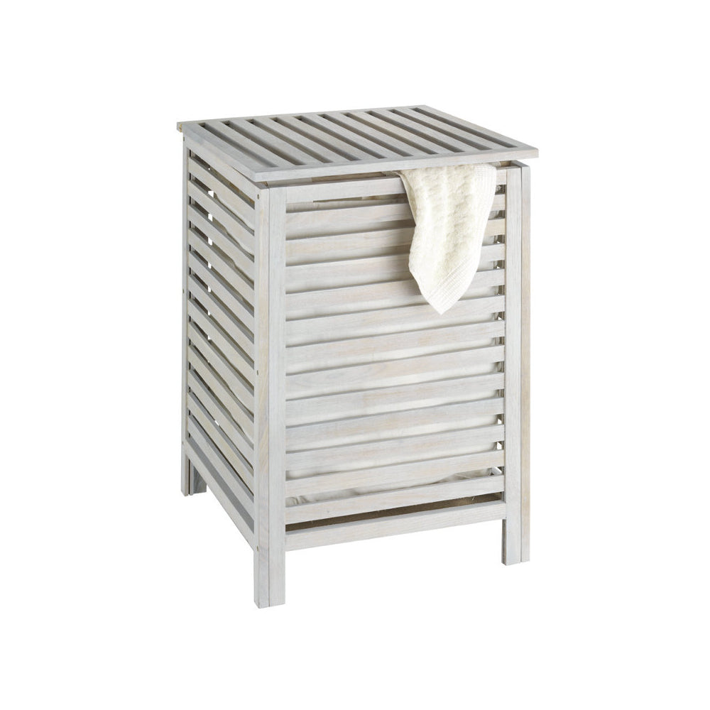 Wenko Norway Natural, cesto portabiancheria sbiancato. Con sacco portabiancheria in cotone rimovibile e lavabile. Realizzato in legno massello di noce, sbiancato. Lavorazione di alta qualità. 45 x 45 x 65 cm.