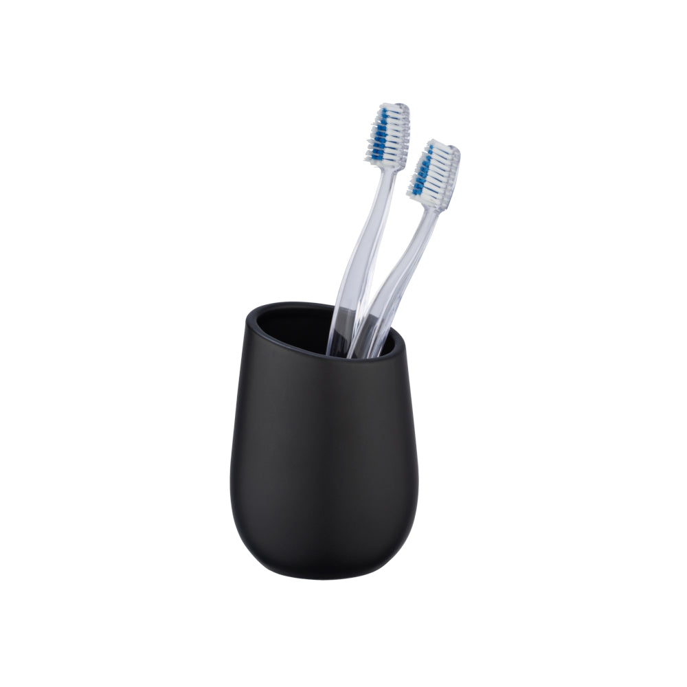 Wenko Zahnputzbecher Badi, schwarz Matte, hochwertige Keramik.