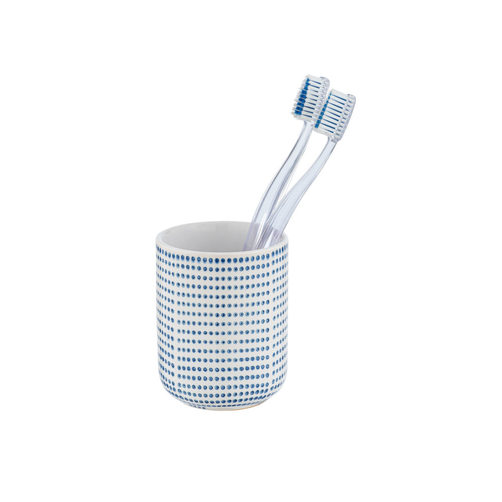 Portaspazzolino Wenko Nole, in ceramica. Ceramica di alta qualità con superficie punteggiata. Dipinto a mano. Con coperchio flessibile in plastica nera.