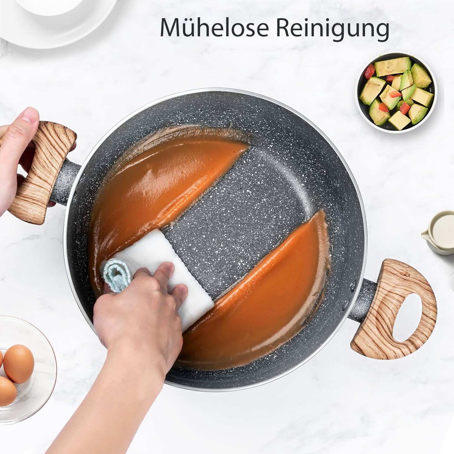 Entdecken Sie unser 6-teiliges Aluminium-Kochgeschirr-Set, das aus lebensmittelechtem Material gefertigt ist und optimale Wärmeleitung bietet. Es ist kompatibel mit Gas-, Elektro-, Strahlungs- und Induktionsherden. Jedes Teil verfügt über einen eleganten Glasdeckel mit rostfreiem Stahlrand. Ideal für alle Kochbedürfnisse und perfekt für Hobby- und Profiköche!