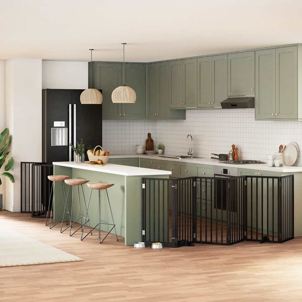12-tlg. Hundetor mit Tür Faltbar Schwarz 600 cm Pappelholz