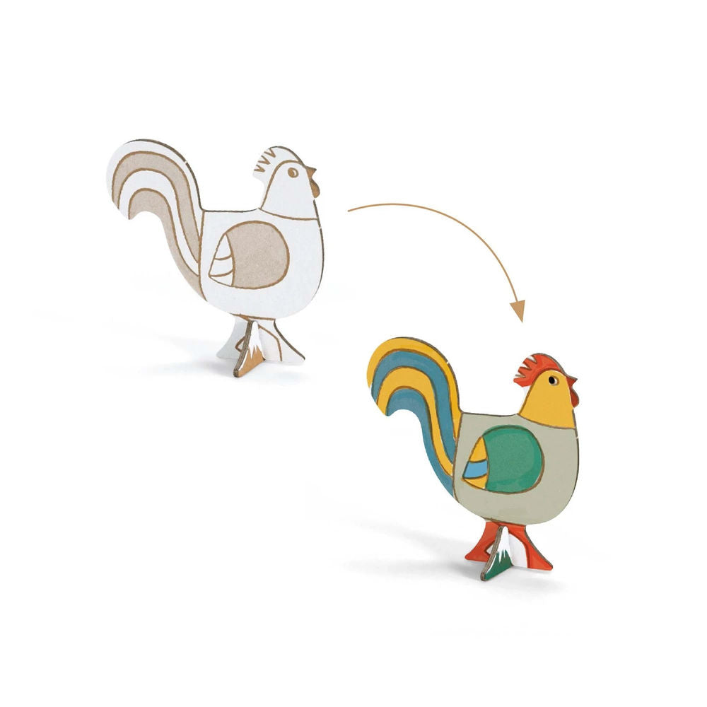 Djeco 3D Bau- & Malset Bauernhof (klein) Ein kreativer Bausatz mit einer Vielzahl von Kartonteilen zum Ausmalen und Zusammensetzen, um Bauernhoftiere und Dekorationen zu gestalten. Das Kind spielt mit allen erstellten Elementen und schon geht es los mit märchenhaften Geschichten!