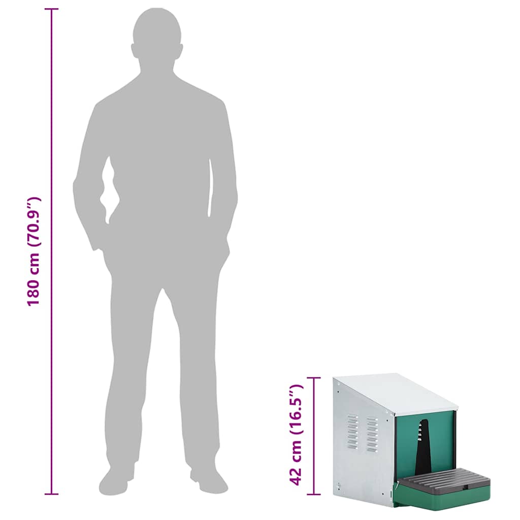 Bieten Sie Ihren Hühner eine geschützte und komfortable Umgebung zum Legen der Eier mit diesem Abroll-Nistkasten. Nach dem Legen rollen die Eier automatisch in eine Auffangschale, um nicht zu zerbrechen. So lassen sie sich auch ganz einfach sammeln. Der Nestomatic Nistkasten ist aus robustem verzinktem Metallblech und ABS-Kunststoff gefertigt, der langlebig und UV-beständig ist. Der Deckel des Auffangbehälters kann hochgeklappt werden, was einen einfachen Zugang zu den Eiern ermöglicht. Dieser Geflügel-Nistkasten besitzt eine weiche Nistunterlage aus PE, die gegen Bakterien beständig ist und dem Geflügel höchsten Komfort bietet! Die Vorhänge des Nistkasten sorgen dafür, dass die Henne über einen geschützten dunklen Platz zum Eierlegen verfügt.
