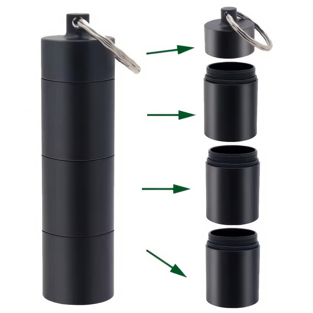 Unsere kompakte und stilvolle Tablettenbox aus hochwertigem Aluminium ist die ideale Lösung, um Ihre Medikamente, Vitamine oder Nahrungsergänzungsmittel sicher und griffbereit aufzubewahren. Dank des robusten Materials bleibt der Inhalt vor Feuchtigkeit und äußeren Einflüssen geschützt. Durchmesser ca. 1.3 cm, Länge ca. 3 cm, Gesamtlänge ca. 5 cm.