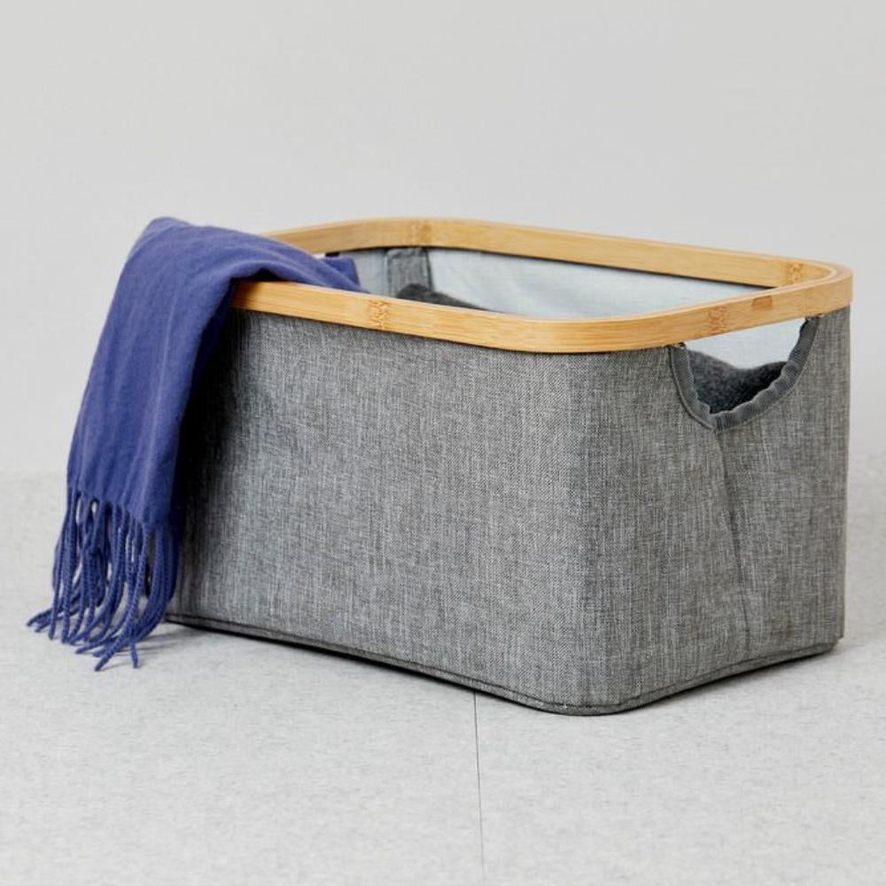 Wenko Aufbewahrungskorb Bahari, faltbarbraun/grau Hochwertiger Bambus Aufbewahrungskorb in trendigem Design. Platzsparend zusammenklappbar. Fassungsvermögen: 20 ltr. 38 x 20 x 26 cm