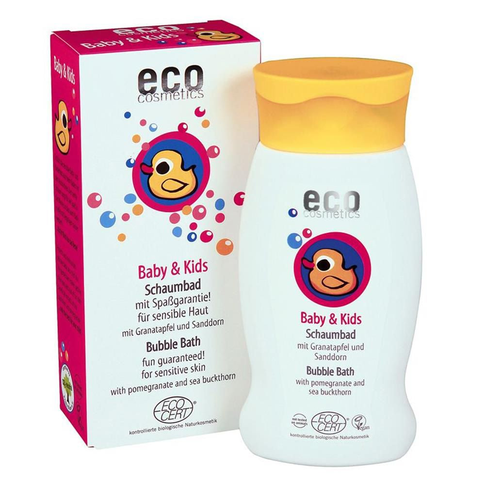 Das Eco Cosmetics Baby und Kids Schaumbad in der 200-ml-Packung ist speziell entwickelt, um den Bedürfnissen der empfindlichen Haut von Babys und Kindern gerecht zu werden. Dieses Schaumbad verwandelt das tägliche Bad in ein spaßiges und pflegendes Erlebnis für kleine Wasserratten. Der reichhaltige, zarte Schaum sorgt nicht nur für Vergnügen, sondern reinigt auch sanft die zarte Kinderhaut, ohne sie zu belasten. Ein wesentliches Merkmal dieses Schaumbades ist der Einsatz von hochwertigen, natürlichen Inhaltsstoffen. Der enthaltene Bio-Sanddornblatt-Extrakt unterstützt die noch in der Entwicklung befindlichen Hautfunktionen der Kinder. Diese wertvolle Komponente wirkt beruhigend und erhält die natürliche Geschmeidigkeit der Haut. Zusätzlich sorgt der Bio-Granatapfel-Auszug für eine intensive Feuchtigkeitsversorgung, was besonders wichtig ist, um ein Austrocknen der sensiblen Baby- und Kinderhaut zu verhindern. Das Schaumbad zeichnet sich durch seinen milden Duft aus, der aus natürlichen ätherischen Ölen gewonnen wird. Dies unterstreicht das Engagement von Eco Cosmetics für die Verwendung von Inhaltsstoffen, die sowohl hautfreundlich als auch umweltverträglich sind. Es ist beachtenswert, dass 100 % der Inhaltsstoffe natürlichen Ursprungs sind, wobei 99,4 % der pflanzlichen Inhaltsstoffe und 16 % der Gesamtinhaltsstoffe aus kontrolliert biologischem Anbau stammen. Diese Zusammensetzung gewährleistet eine sanfte und effektive Reinigung, die speziell auf die Bedürfnisse der Kleinsten abgestimmt ist.