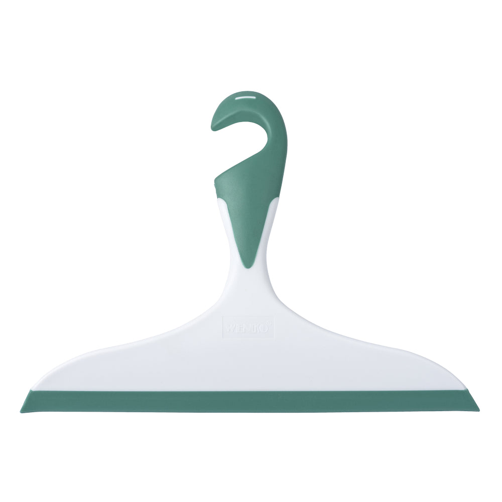 Wenko Badezimmerwischer 2K Loano, grün/weiss Mit praktischem Haken zum Aufhängen. Universeller Wischer für Bad und Dusche. Streifenfreies Abwischen von glatten Flächen, wie Spiegel, Duschkabinen und Wandfliesen. 17x23 cm
