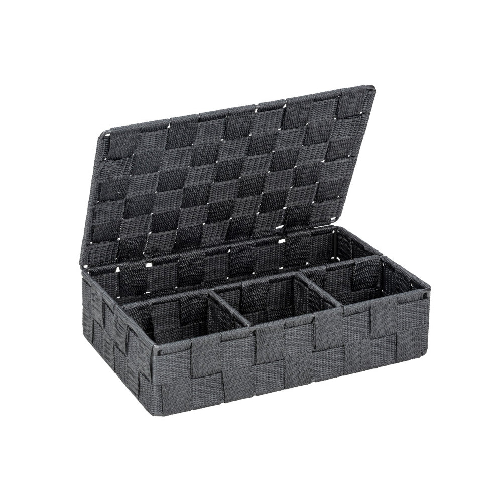 Wenko Badorganizer Adria klein, mit Deckeldunkelgrau Praktischer Organizer mit Deckel aus hochwertigem PP-Geflecht mit 3 kleineren und 1 größerem Fach. Stapelbar. 26 x 17 x 7.5 cm