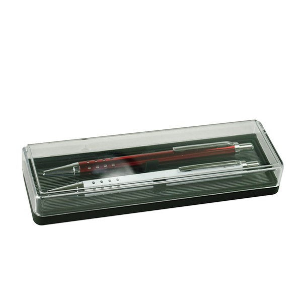 Die BOX II Geschenkbox ist eine hochwertige Kunststoffverpackung mit transparentem Deckel und bietet Platz für zwei Schreibgeräte. Ideal für kratzresistente Stifte mit einem durchschnittlichen Durchmesser, sorgt sie für eine stilvolle und sichere Präsentation. Mit kompakten Maßen von 15,5 x 5 cm ist sie praktisch in der Handhabung und perfekt geeignet als edle Verpackungslösung für besondere Anlässe oder Werbegeschenke. Setzen Sie Ihre Schreibgeräte gekonnt in Szene – mit der BOX II Geschenkbox.