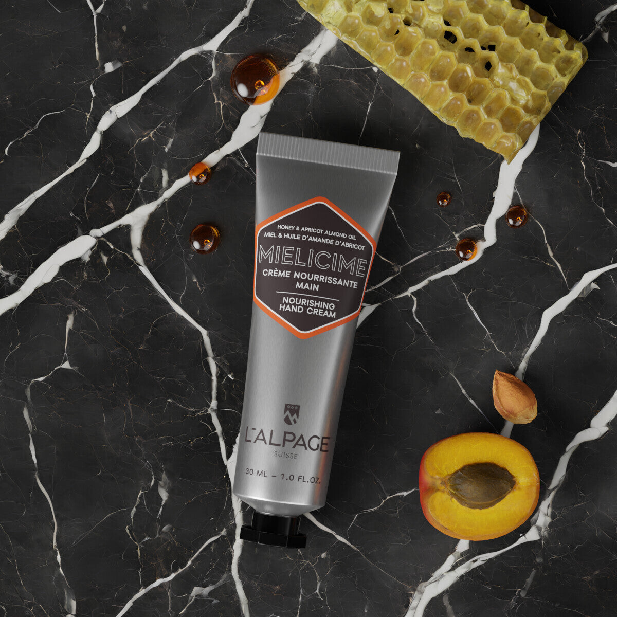 La Crème Nourrissante Mains est enrichie en miel bio, huile d'amande d'abricot, rose musquée bio, épilobe, génépi, menthe poivrée, beurre de karité et Vitamines E qui vont contribuer à nourrir intensément les peaux normales à sèches tout en les hydratant (+50% après 2h)*.