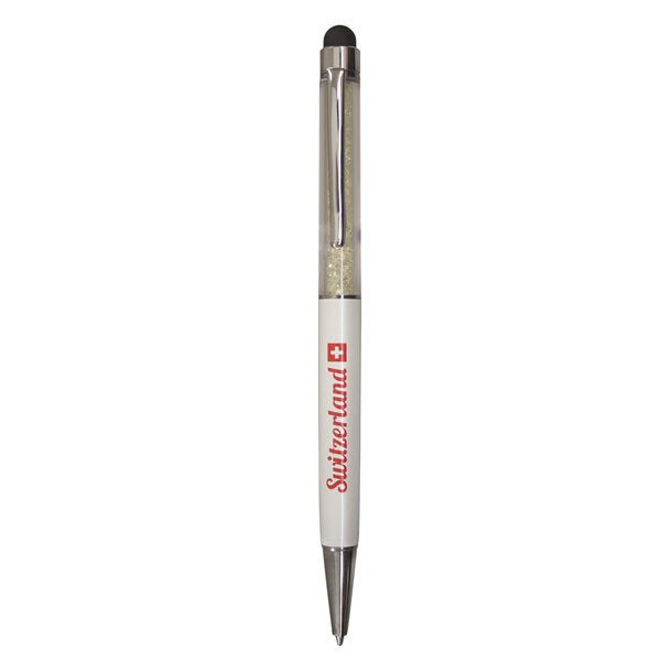 Der CRYSTAL TOUCH Kugelschreiber vereint stilvolles Design mit moderner Funktionalität. Sein Gehäuse aus robustem Metall ist mit zahlreichen funkelnden Kristallen besetzt und sorgt für einen glamourösen Auftritt – ideal für den Alltag und besondere Anlässe. Highlights: Edle Verarbeitung: Hochwertige Metallausführung mit verchromten Akzenten. Glitzernder Blickfang: Verziert mit dekorativen Kristallen für eine elegante Optik. Angenehmes Schreiben: 14 cm Länge, 0,9 cm Durchmesser, blaue Qualitätsmine (1,0 mm). Multifunktional: Mit integriertem Touchpen am Endstück für Smartphones & Tablets.