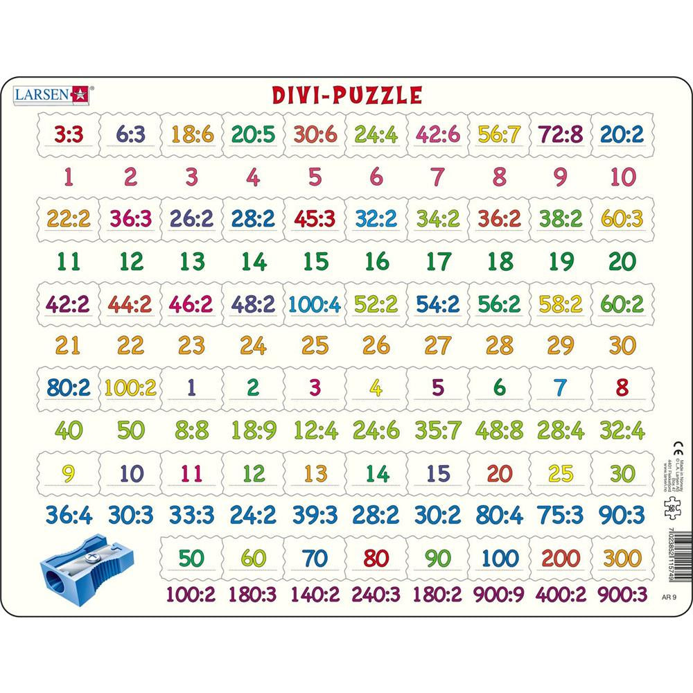 Larsen Puzzle Divi-Rätsel, 58 Teile Lernen Sie 58 Matheaufgaben mit diesem herausfordernden Teilungspuzzle. 12 Zahlenreihen und 'Probleme' sind in diesem Rätsel enthalten. Jede Antwort auf die Probleme erhöht sich in der Reihenfolge ihrer Reihenfolge bis zu 30. Der Rest ist eine Mischung aus verschiedenen Unterteilungen mit gleichen oder höheren Zahlen. In der linken Ecke finden Sie das Emblem eines Bleistiftanspitzers, um dem Rätsel ein lustiges Lernelement zu geben. Das Puzzle wird komplett mit 58 individuell zugeschnittenen Teilen geliefert, die für etwas ältere Kinder geeignet sind, die grundlegende Einteilungen lernen. L: 36.6 x B: 28.3 x H: 0.4 cm