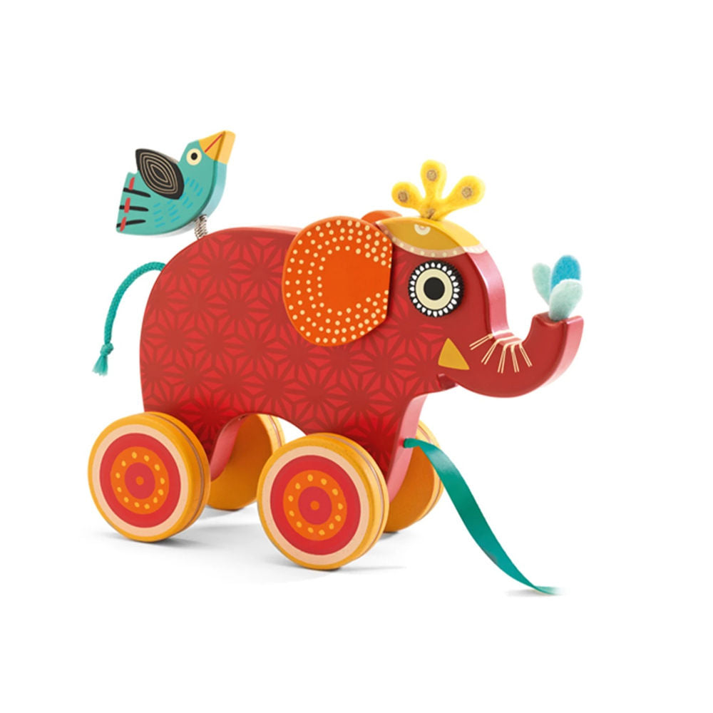 Djeco Nachziehtier Indy Dieses süsse bunte Nachziehtier ist ein treuer Begleiter. Es ist aus Holz und mit süssen Details bemalt.