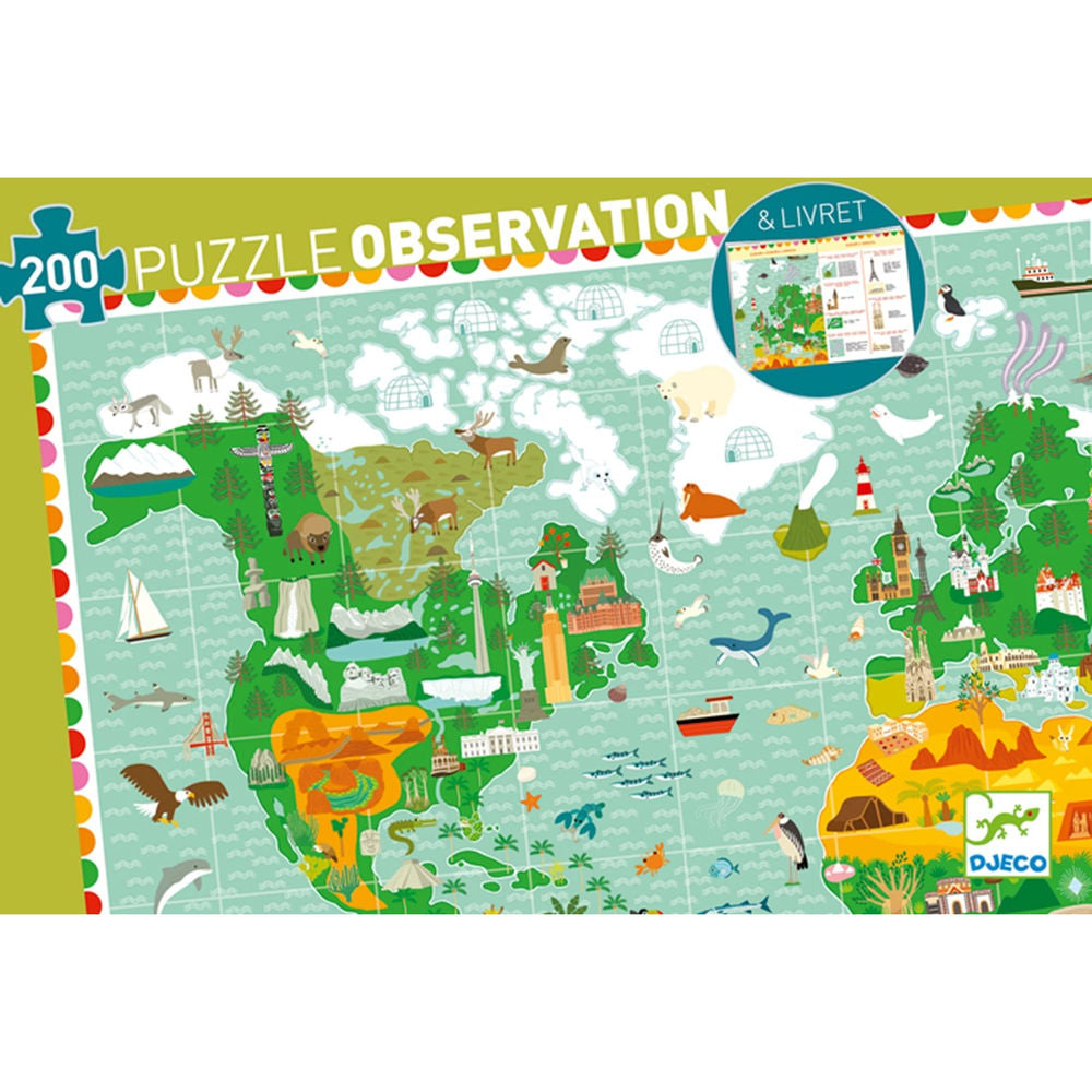 Djeco Rund um die Welt 200 Teile Auf dem Entdeckerpuzzle Reise um die Welt von Djeco gibt es viel zu sehen. Jeder Teil der Welt ist mit den für ihn charakteristischen Tieren, Bauwerken oder anderen Dingen abgebildet. So lassen sich auch lustige Entdeckerspiele veranstalten. Wer findet den Eiffelturm? In welchem Land steht er? Eine zusätzlich enthaltene Broschüre gibt weitere Informationen zum Thema. Gelegte Grösse: 61x38cm.