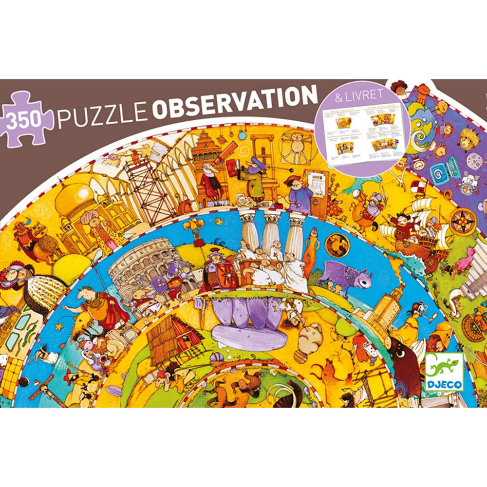 Djeco Zeitreise 350 Teile Auf dem Entdeckerpuzzle Zeitreise von Djeco findet sich die Geschichte der Menschheit im Schneckenformat. Die liebevoll bunt gestalteten Bilder erzählen die Geschichte von der Urzeit bis heute. Eine zusätzlich enthaltene Broschüre liefert noch weitere Informationen zur Weltgeschichte. Gelegte Grösse: Durchmesser65cm.