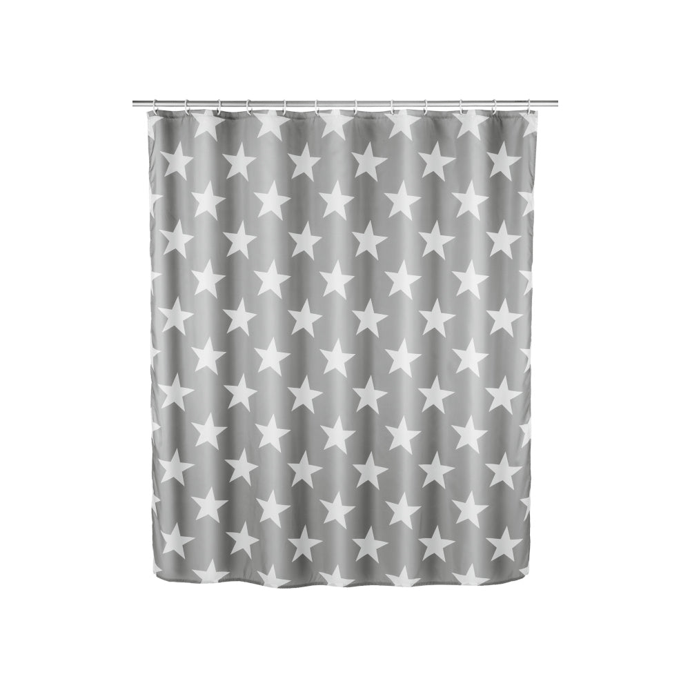 Wenko Duschvorhang Stella, grau antischimmel Hakenbeutel mit Einleger Mit Duschvorhangringen. 180 x 200 cm