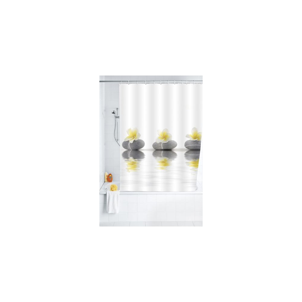 Wenko Duschvorhang Stones w. Flowers, 180x200 cm Polyester Mit Duschvorhangringen.