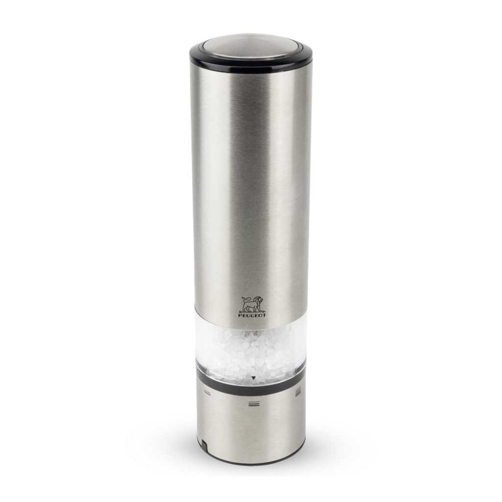 Peugeot Elis Sense elektrische Salzrmühle, 20 cm Die elektrische Salzmühle ELIS SENSE, die zum ersten Mal mit der Sensortechnologie ausgestattet ist, bietet eine noch nie erreichte Ergonomie. Kein Knopf mehr, auf den man drücken muss, der einfache Kontakt der Hand reicht jetzt aus! Wenn Sie gleichzeitig den Korpus der Mühle und den Sensor an der Oberseite berühren, gibt ELIS SENSE die richtige Dosis Pfeffer aus, und eine blaue Lampe leuchtet auf. Gleichzeitig schaltet sich unten an der Mühle die Beleuchtung mit einem LED-System, die weitgehend zu ihrem Ruf beigetragen hat, ein. Das unumgängliche patentierte System u’Select sorgt auch hier dafür, dass stets der perfekte Mahlgrad erzielt wird. Peugeot bringt die erste Generation von elektrischen Mühlen mit Sensor-Automatik auf den Markt! Produktdetails Taktile Bedienung mit nur einer Hand hochwertige Edelstahl-Qualität LED-Beleuchtung und die patentierte u'Select-Technik, die den Mahlgrad stufenlos im Fuss der Mühle verstellt, machen dieses Premium-Produkt zu einem innovativen Mühlentyp für höchste Ansprüche Höhe: 20 cm