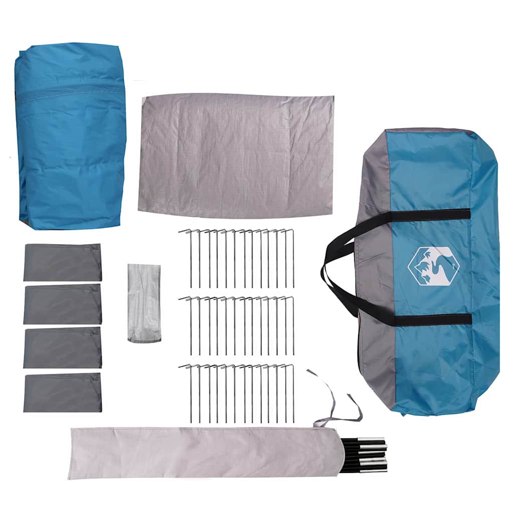 Familienzelt mit Dach Blau und Grau 745 x 700 x 217 cm