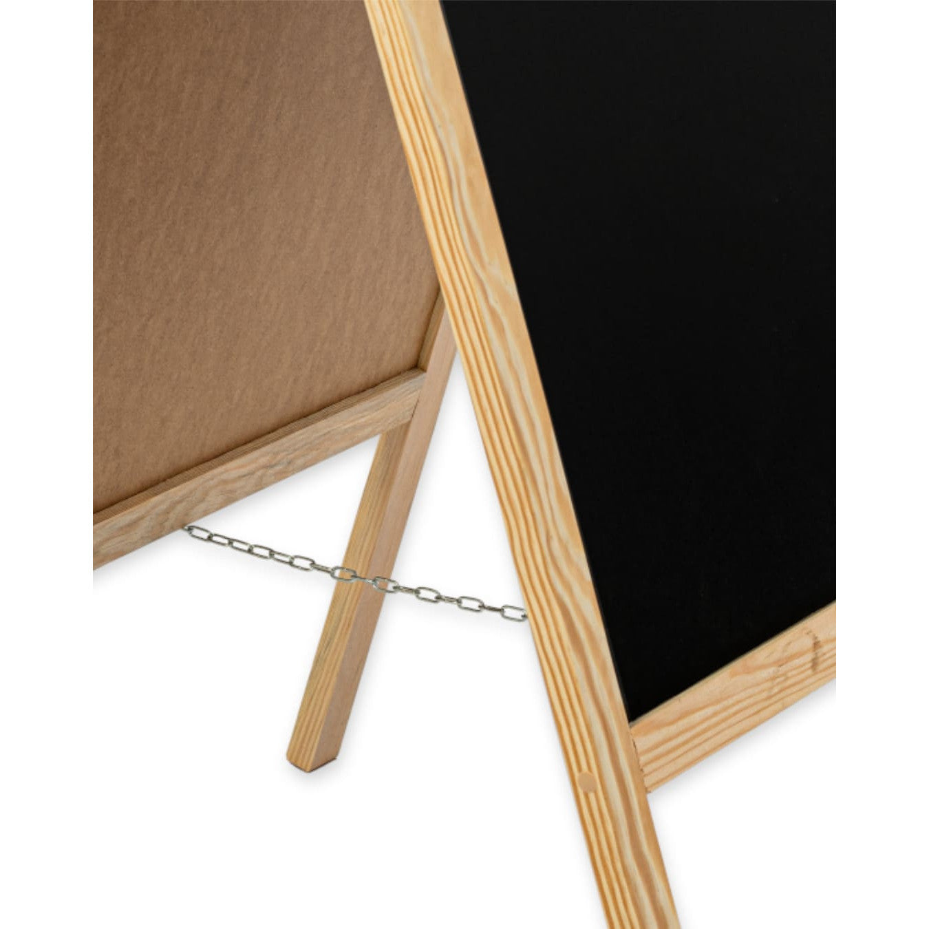 Dieser elegante Aufsteller kombiniert ein stabiles Holzgestell mit einer beschreibbaren Kreidetafel (66x44 cm), die du ganz einfach mit Kreide oder Kreidemarkern gestalten kannst. Ideal für Gastronomiebetriebe, Ladenbesitzer, Events, Hochzeiten oder sogar als kreative Malfläche für Kinder.