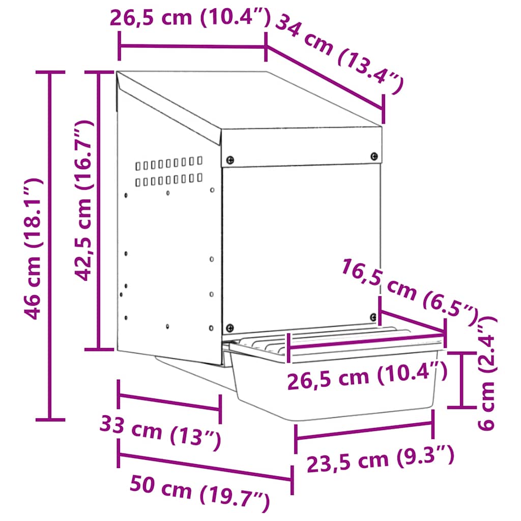Verbessern Sie Ihre Geflügelhaltung mit dem Hühnernistkasten und bieten Sie Ihren Hühnern einen privaten, komfortablen Legebereich. Robustes und langlebiges Material: Dieser aus verzinktem Stahl und robustem Polypropylen-Kunststoff gefertigte Nistkasten ist auf Langlebigkeit ausgelegt und bietet Ihren Hühnern lang anhaltende Leistung und Schutz vor rauen Außenbedingungen.Bequemes Eiersammeln: Der leicht anzuhebende Deckel und das ausrollbare Design ermöglichen ein müheloses Eiersammeln, ohne dass die Hühner gestört werden. Das durchdachte Design schafft eine ruhige Umgebung für Ihre Hühner und macht das Eiersammeln reibungslos, problemlos und pflegeleicht.Mühelose Installation: Der Nistkasten mit offener Vorderseite, die sich nahtlos in Wandausschnitte integriert, bietet Hühnern einfachen Zugang und sorgt gleichzeitig für eine ordentliche, platzsparende Anordnung. Ideal für Holzwände mit vorgefertigten Ausschnitten, gewährleistet es eine schnelle und sichere Montage mit minimalem Aufwand.Geschützter Legebereich für Hühner: Durch sein relativ geschlossenes Design animiert dieser Hühnernistkasten die Hennen zum bequemen Eierlegen und reduziert das Risiko, dass Eier außerhalb des Kastens abgelegt werden. Er bietet einen dunklen, sauberen Rückzugsort für ungestörtes Eierlegen – ein ideales Zubehör für jeden Hühnerstall oder Hühnerstall.Leicht zu reinigen: Die Ablage lässt sich zum Reinigen leicht herausnehmen, und die glatten Oberflächen sowohl der Ablage als auch des Kastens machen die Reinigung mühelos und sorgen für eine sauberere und hygienischere Umgebung für Ihre Hühner. Gut zu wissen:Um Kratzer zu vermeiden, wird empfohlen, während der Montage Handschuhe zu tragen.Das Produkt ist zur Montage an Holzwänden geeignet.